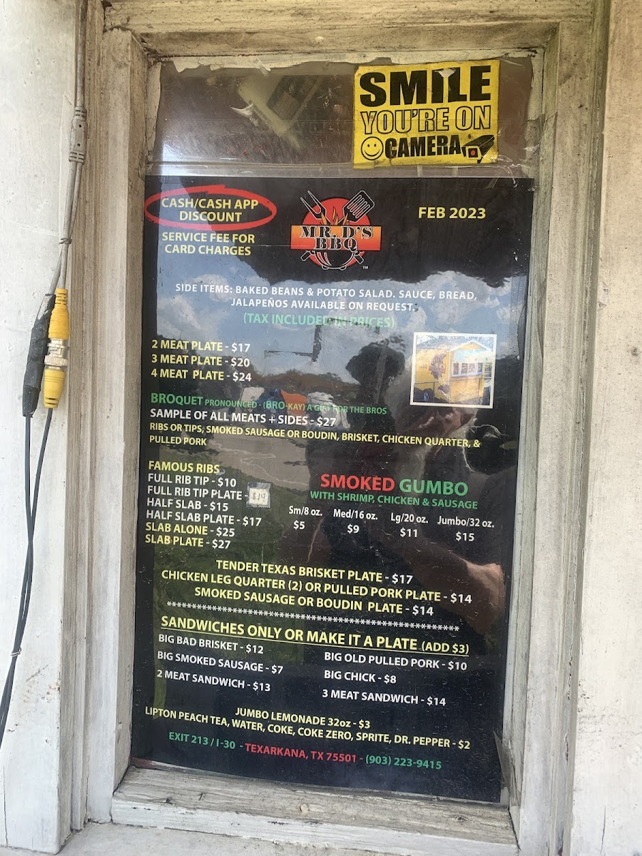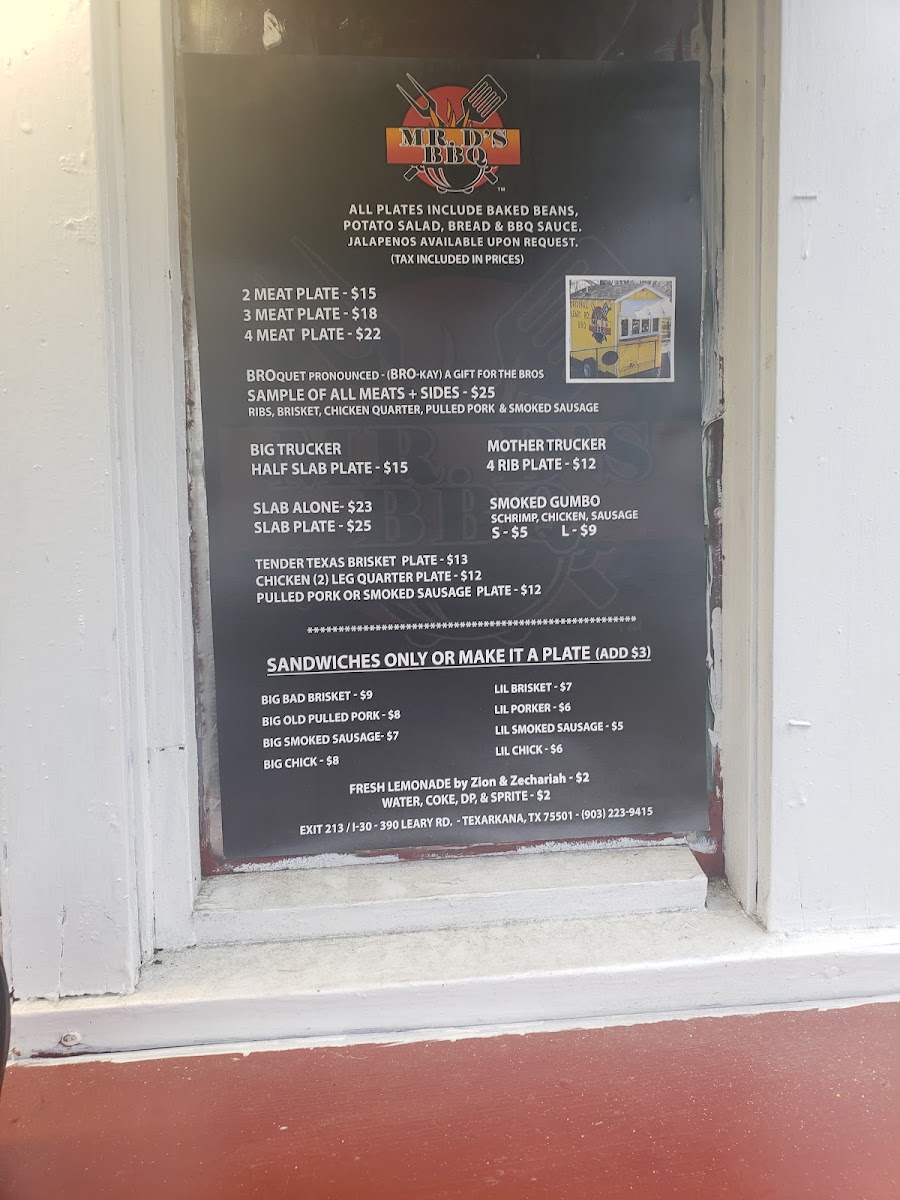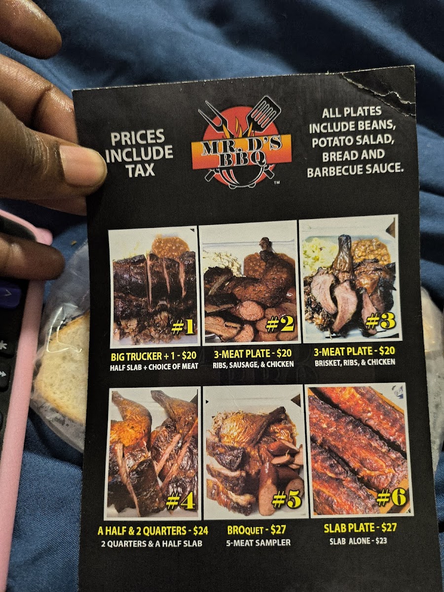 Welcome to Mr. D's BBQ, a culinary gem nestled in Texarkana, TX. Known for its legendary ribs, Mr. D's offers a mouthwatering selection that includes a Half Slab at just $21.70, boasting tender, smoky flavor that keeps patrons coming back for more. For those craving variety, the Three Meat Plate allows you to sample brisket, boudin sausage, and their standout smoked gumbo, which is a crowd favorite, available in sizes from 8 oz to 32 oz.